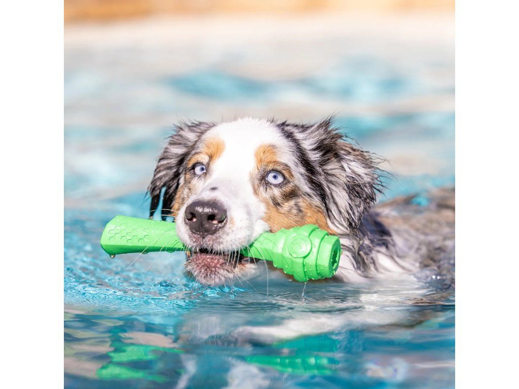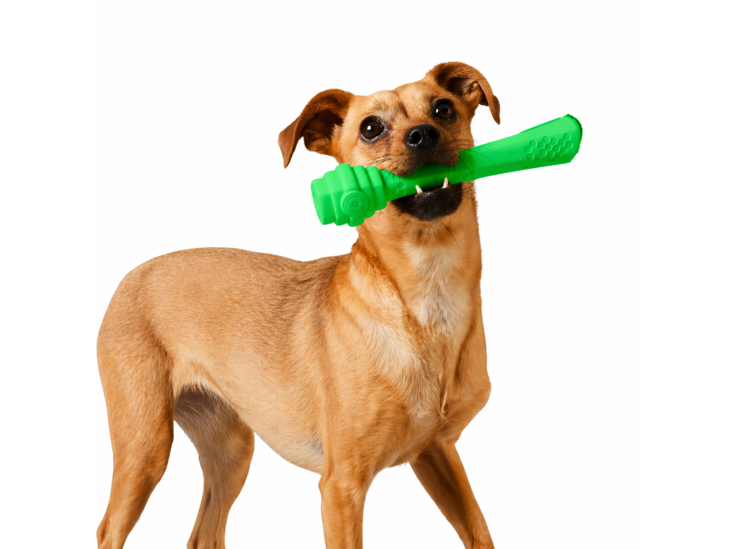 This tropical coconut-scented Chew Stick will be your dog’s new favorite toy! Made in the USA, the Chew Stick is bouncy, durable, and super engaging! Dogs love to gnaw on the honey-dipper shape, which promotes healthy teeth and gums. They can easily carry it in their mouths without the risks of a natural stick, which can hurt your pup’s mouth and digestive system. The Chew Stick’s bright color is easy for you and your dog to spot indoors, on land, or floating in water.
