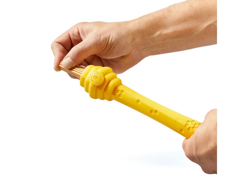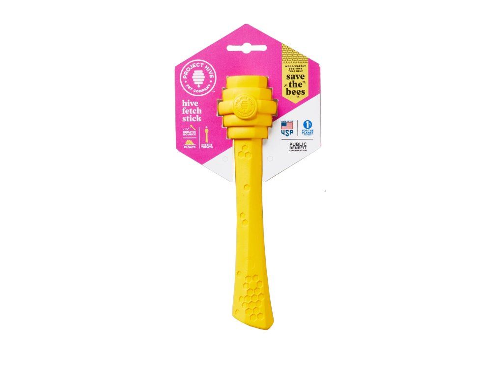 Our Yellow Chew Stick is as fun to fetch and chew as natural sticks, but without all the bark and splinters that can hurt your pup’s mouth and digestive system. Resembling a honey dipper, dogs love to gnaw on the hive shape, which promotes healthy teeth and gums. And they can easily carry it in their mouths. The Yellow Chew Stick’s bright yellow color is easy for you and your dog to spot inside and out, and it floats for games of fetch by the pool or lake on those hot days.