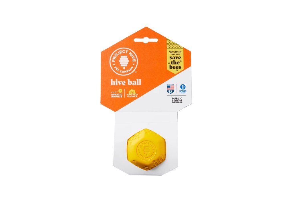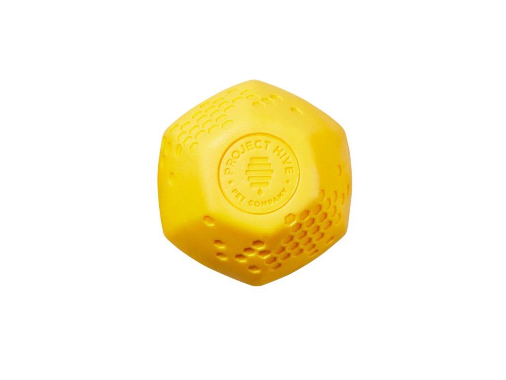 With its erratic and unpredictable bounce, our yellow durable ball takes the game of fetch to an exciting new level. The Hive Ball works with standard ball throwers and is safer and more durable than a tennis ball. The bright yellow color makes it easy for you and your dog to find—even in tall grass, and it floats for fetchable fun in the water.